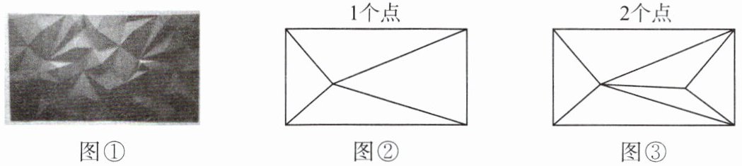 17.“低多边形风格”是一种数字艺术设计风格,它将整个区域分割为若干三角形,通过把相邻三角形涂上不同颜色,产生立体和光影效果.将长方形区域分割成三角形的过程是:在长方形内取一定数量的点,将长方形的4个顶点以及这些点之间进行连接(所有连线不相交产生新的点),直到长方形内所有区域都变成三角形.若长方形内有4个点,则有