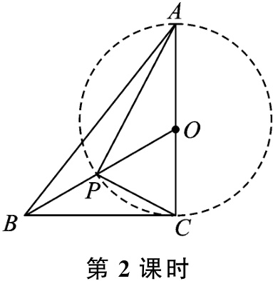 11.如图,$Rt\triangle ABC$中,$\angle ACB= 90^{\circ}$,$AC= 2\sqrt{3}$,$BC= 3$.点$P为\triangle ABC$内一点,且满足$PA^2+PC^2= AC^2$.当$PB$的长度最小时,求$\triangle ACP$的面积.