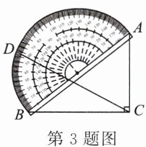 3. 如图,一块直角三角板ABC的斜边AB与量角器的直径恰好重合,点D对应的刻度是$58^\circ$,则$∠ACD$的度数为______°.