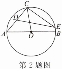 2. 如图,在⊙O中,AB为直径,$∠AOC= 80^\circ$,点D为弦AC的中点,点E为$\widehat{BC}$上任意一点.则$∠CED$的大小可能是( ).