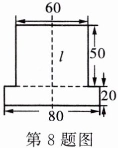 8. 如图,在由两个长方形组成的工件的平面图(单位:mm)中,直线l是它的对称轴.能完全覆盖这个平面图形的圆面的最小半径是______mm.