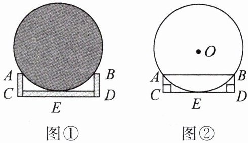10.工人师傅为检测工厂生产的一种铁球的大小是否符合要求,设计了一个如图①所示的工件槽,其两个底角均为$90^\circ$,将形状规则的铁球放入槽内时,若同时具有图①所示的$A,B,E$三个接触点,该球的大小就符合要求.图②是过球心及$A,B,E$三点的截面示意图,已知$\odot O$的直径就是铁球的直径,$AB是\odot O$的弦,$CD切\odot O于点E$,$AC\perp CD$,$BD\perp CD$,若$CD= 16\,cm$,$AC= BD= 4\,cm$,则这种铁球的直径为( ).[img][img]