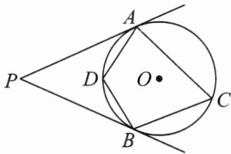 5. 如图,PA,PB 分别切$\odot O$于 A,B 两点,C 为优弧$\overset{\frown}{ACB}$上一点,D 为劣弧$\overset{\frown}{AB}$上一点.