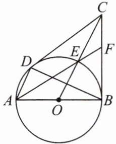 (2)连接 CD,可得 DE=AE=EC,AC=2DE=10,DC=6.设 BD=x,在 Rt△BDC 和 Rt△ABC 中,根据勾股定理,得$x^{2}+6^{2}=(x+8)^{2}-10^{2}$,解得$x=\frac{9}{2}$,