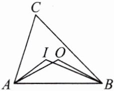分析:$\angle AIB和\angle AOB都与\angle C$有关系,$\angle AOB= 2\angle C$,$\angle AIB= 180^{\circ}-(\angle IAB+\angle IBA)= 180^{\circ}-\frac{1}{2}(\angle CAB+\angle CBA)= 180^{\circ}-\frac{1}{2}(180^{\circ}-\angle C)= 90^{\circ}+\frac{1}{2}\angle C$.