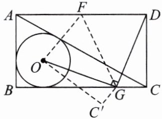 6.如图,AC是矩形ABCD的对角线,$\odot O是\triangle ABC$的内切圆,现将矩形ABCD按如图所示的方式折叠,使点D与点O重合,折痕为FG.点F,G分别在边AD,BC上,连接OG,DG.若$OG\perp DG$,且$\odot O$的半径长为1,则下列结论中不成立的是( ).