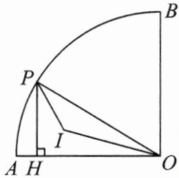9.如图,圆心角为$90^{\circ}$的扇形OAB的$\overset{\frown}{AB}$上有一动点P,过点P作$PH\perp OA$,垂足为H,设点I为$\triangle OPH$的内心.