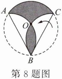 8. 如图,将半径为6的圆形纸片分别沿AB,BC折叠,若$\widehat{AB}和\widehat{BC}$折叠后都经过圆心O,则阴影部分的面积是______(结果保留π).