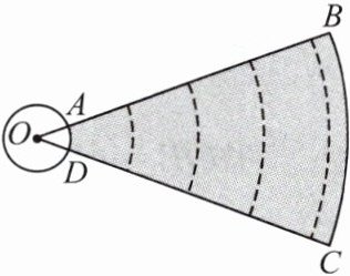4. 右图为某学校田径运动场中铅球场地的设计图.该场地由⊙O和扇形OBC组成,OB,OC分别与⊙O交于点A,点D.OA= 1 m,OB= 10 m,∠AOD= 40°,则阴影部分的面积为______$m^2$(结果保留π).