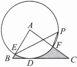 5. 如图,在△ABC中,BC= 4.以点A为圆心,2为半径的⊙A与BC相切于点D,交AB于点E,交AC于点F.P是⊙A上的一点,且∠EPF= 40°.求图中阴影部分的面积.