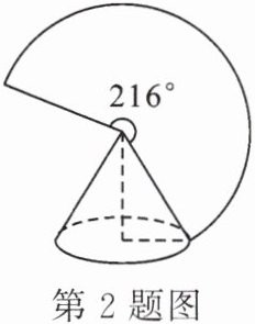 2. 如图,圆锥底面半径为$ r\ cm $,母线长为$ 10\ cm $,其侧面展开图是圆心角为$ 216^\circ $的扇形,则$ r $的值为( ).