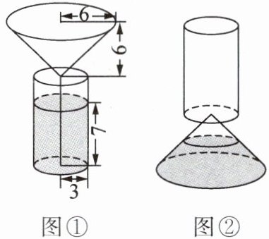 8.某餐厅推出一种液体“沙漏”免单方案(点单完成后倒转“沙漏”,“沙漏”漏完前客人所点的菜须全部上桌,否则该桌免费用餐).计时开始前的“沙漏”如图①所示,由一个圆锥和一个圆柱相通连接而成,圆锥底面半径是6 cm,高是6 cm,圆柱底面半径是3 cm,液体高是7 cm.计时结束后的“沙漏”如图②所示,此时“沙漏”中液体的高度为( ).