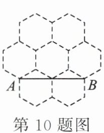 10.蜂巢的构造非常美丽、科学.如图,由7个形状、大小完全相同的正六边形组成的网格,正六边形的顶点称为格点,△ABC的顶点都在格点上.设定AB边如图所示,能与AB边构成直角三角形的C点有( ).