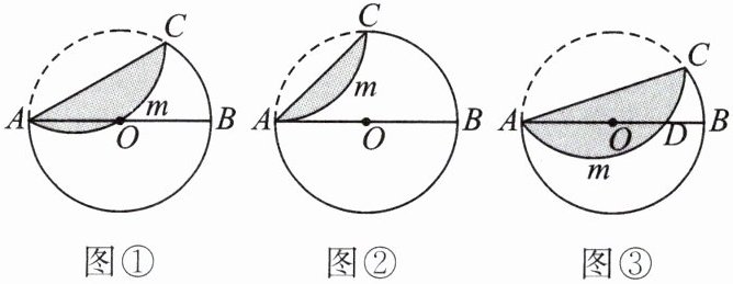 (3)如图③,设$\overset{\frown}{AmC}$与直径AB交于点D,DB= x,用含x的代数式表示AC的长.