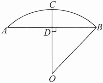 22.石拱桥是我国古代人民勤劳和智慧的结晶.根据某石拱桥的实物图画出的几何图形如图所示,桥的主桥拱是圆弧形,表示为$\overset{\frown}{AB}$.桥的跨度(弧所对的弦长)AB= 26 m,设$\overset{\frown}{AB}$所在圆的圆心为O,半径OC⊥AB,垂足为D.拱高(弧的中点到弦的距离)CD= 5 m.连接OB.