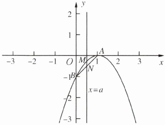 $\therefore$线段AB的解析式为$y= x-1(0\leqslant x\leqslant 1)$.$\therefore$点M的坐标为$(a,-(a-1)^{2})$,点N的坐标为$(a,a-1)$.