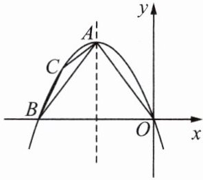 9. 如图,在平面直角坐标系中,点 $ A $ 在第二象限,以点 $ A $ 为顶点的抛物线 $ y = -(x - h)^2 + k $ 经过原点,与 $ x $ 轴负半轴交于点 $ B $,点 $ C $ 在抛物线上,且位于点 $ A, B $ 之间(点 $ C $ 不与点 $ A, B $ 重合).若四边形 $ AOBC $ 的周长为14,$ \triangle ABC $ 的周长大于8,求 $ h $ 的取值范围.