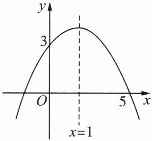 设抛物线的解析式为$y = a(x + 3)(x - 5)$,把$(0,3)$代入,得$a×3×(-5)= 3$,解得$a = -\frac{1}{5}$。