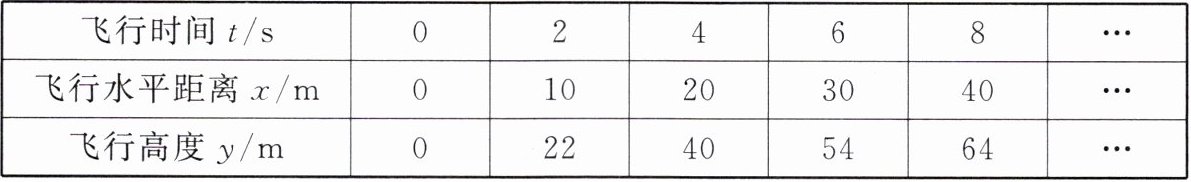 3.某课外科技活动小组制作了一架航模飞机.通过实验,收集了该航模飞机相对于出发点的飞行水平距离$x$(单位:m),飞行高度$y$(单位:m)随飞行时间$t$(单位:s)变化的数据,如下表.