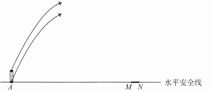 (2)在水平安全线上设置回收区域$MN$,$AM = 125m$,$MN= 5m$.若该航模飞机落到$MN$内(不包括端点$M$,$N$),求发射平台相对于水平安全线的高度的变化范围.