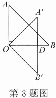 8.如图,在△AOB中,∠AOB= 90°,OA= OB= 6.将△AOB绕点O顺时针旋转45°,得到△A′OB′,A′B′与OB相交于点D,则OD的长为______.