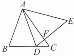 9.如图,△ABC中,∠BAC= 55°,将△ABC逆时针旋转α(0°<α<55°),得到△ADE,DE交AC于点F.当α= 40°时,点D恰好落在BC上,此时∠AFE等于( ).