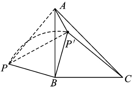 如图,连接PA和PP',设$P'A=a$,则$P'C=3a$.可证$\triangle CBP'\cong \triangle ABP$,故$PA=P'C=3a$.在Rt$\triangle AP'P$中,$P'P=2\sqrt{2}a$,则$PB=P'B=2a$,因此$P'A:PB=1:2$.