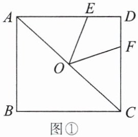 例 如图①,在矩形 $ABCD$ 中,$O$ 为 $AC$ 的中点,点 $E$,$F$ 分别在 $AD$,$CD$ 上,$AE= AO$,$CF= CO$.