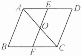 7.如图,已知$\triangle ABC与\triangle CDA关于点O$成中心对称,过点$O作直线EF分别交AD$,$BC于点E$,$F$,有下列结论:①$E和F$,$B和D是关于中心点O$的对称点;②直线$BD必经过点O$;③四边形$ABFO与四边形DEOC$的面积必然相等;④$\triangle AOE与\triangle COF$成中心对称.其中正确的有( ).