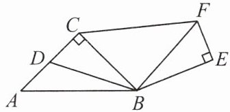 9.如图,在$\triangle ABC$中,$\angle ACB= 90^{\circ}$,$AC= BC= 2\sqrt{2}$,点$D是AC$的中点,连接$BD$,将$\triangle BCD绕点B$旋转,得到$\triangle BEF$,连接$CF$.当$CF // AB$时,$CF= $______.