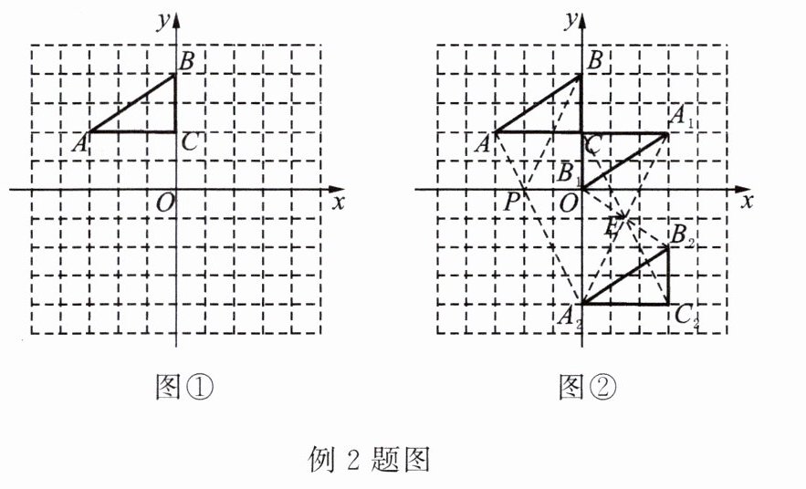 例2 如图①,在平面直角坐标系中,$ Rt\triangle ABC 的三个顶点分别是 A(-3,2),B(0,4),C(0,2) $.