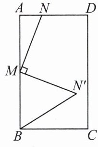 10. 如图,在矩形ABCD中,AB= 10,BC= 6,点M是AB边的中点,点N是AD边上任意一点,将线段MN绕点M顺时针旋转90°,点N旋转到点N',则△MBN'周长的最小值为( ).