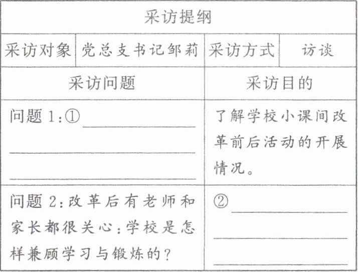8. 【采访提纲】阅读材料三,将下面的采访提纲补充完整。(4 分)