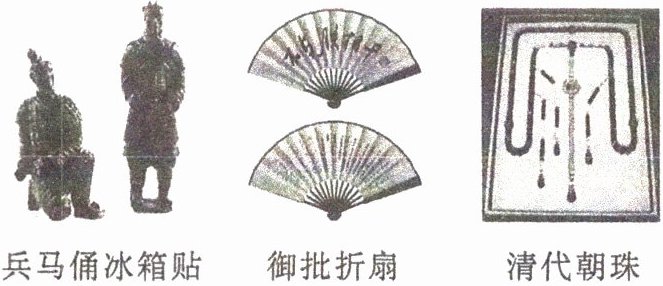 兵马俑冰箱贴 御批折扇 清代朝珠