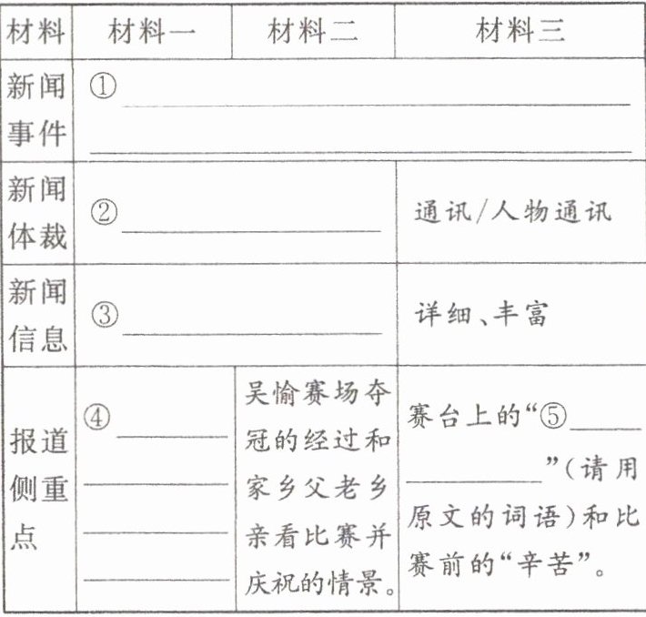 材料三兼有新闻和文学的特点,请将标题补充完整,写出吴愉这位奥运冠军在你心中的形象,使标题既有情感态度,又能吸引眼球:《吴愉:③》。(15 字以内)