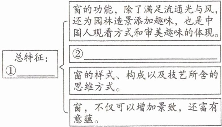 4. “务必使游览者无论站在哪个点上,眼前总是一幅完美的图画”是苏州园林的总体特征,试找出本文中窗的整体特征,并分析在文中是怎么体现的。