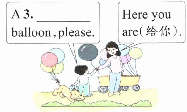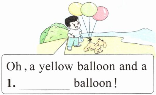 任务一:1. C 2. A 3. B 任务二:B 【解析】图中小狗的尾巴上只有一个红色的气球,故事中第②幅图小男孩买了一个红色的气球,第③幅图小狗的尾巴上有红色、黄色和绿色3个气球,由此可推测,这幅图片应该放在故事中②图和③图之间。