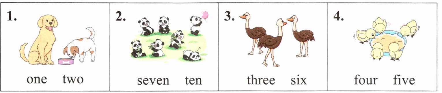 二 你能看到几只动物呢?观察图片,圈出动物数量所对应的单词。