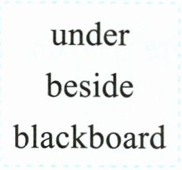blackboard 【解析】under 和 beside 为表示方位的介词,故 blackboard(黑板)与它们不同类。