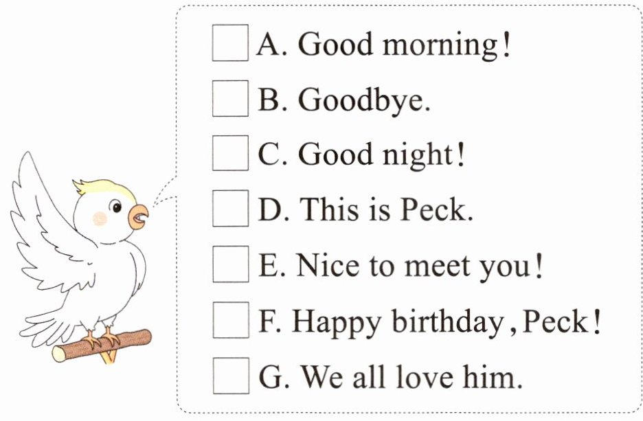 三 根据课本故事内容,在方框内勾选(√)出Peck所说的话。