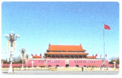 This is Tian’anmen Square. It’s very big. It’s not far from Beijing Railway Station(北京站). Go straight on along the street and turn right. You will see a bus stop. Take the No. 1 bus for eight minutes. Then walk west(向西) and turn right. Tian’anmen Square is in front of you. It is very wonderful!