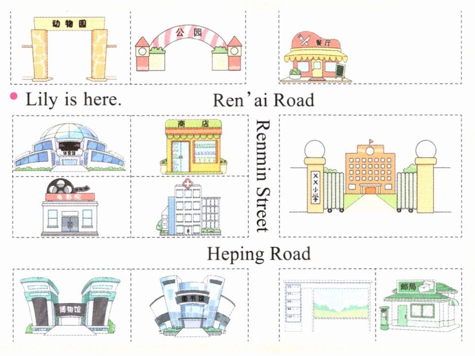 ( )2. Lily is on Renmin Street. She wants to go to the cinema from the bus stop. She should ______.