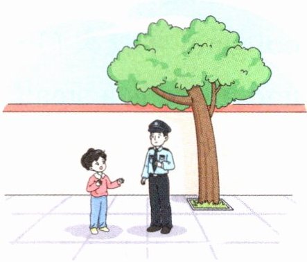 Police officer: First, go straight on. And turn right at the shop. Then go straight on again for five minutes. The bus stop is on the left.