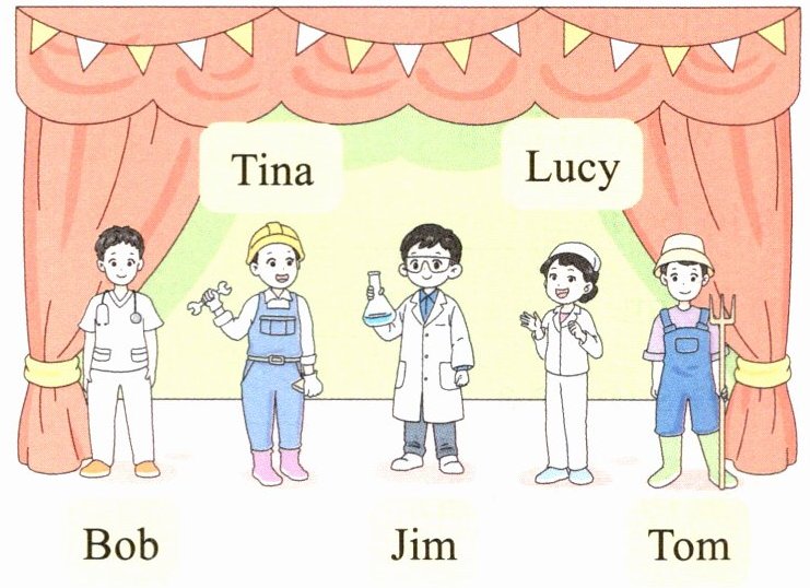 一 Look and write. 上午,学校进行了“职业体验秀”的表演。看图,填写合适的词补全句子。
