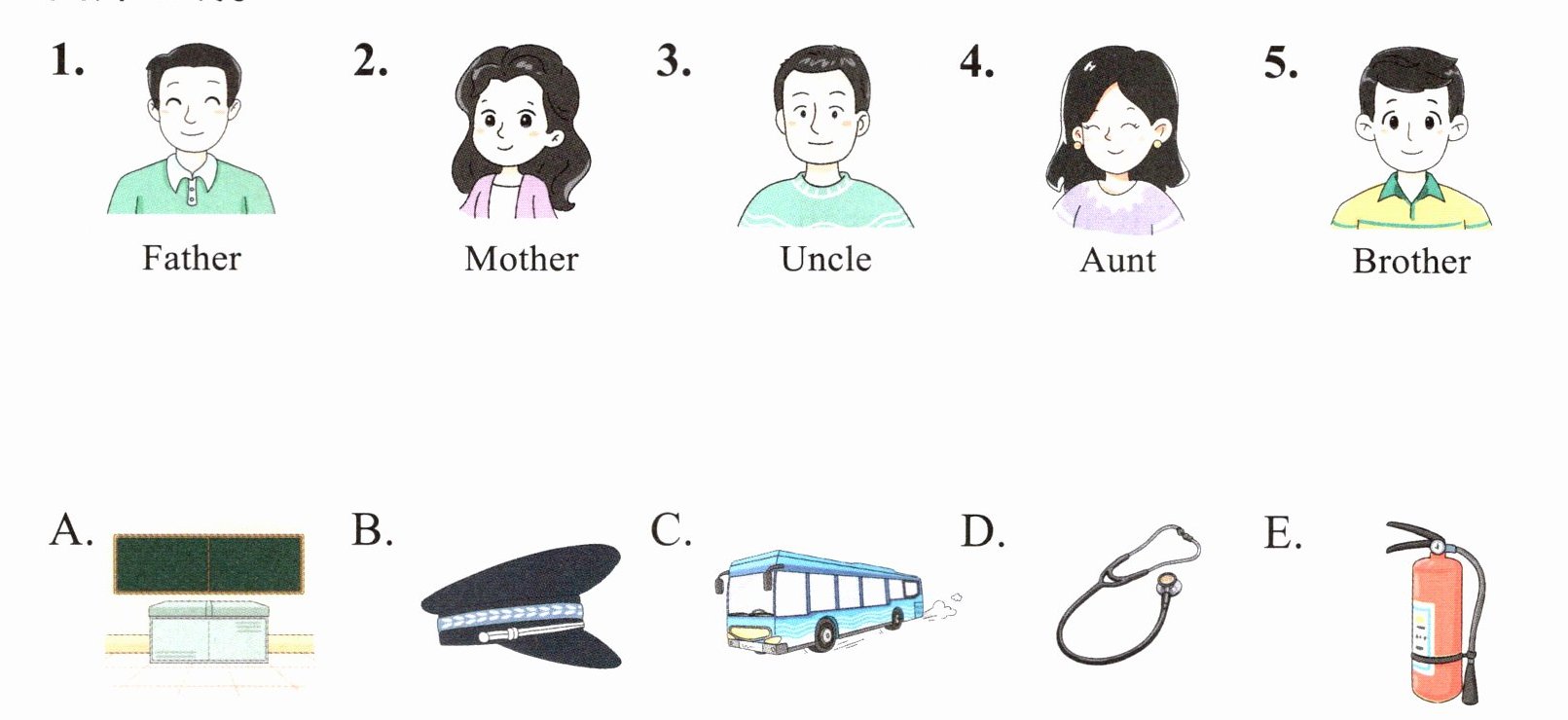 四 Listen and match. Dongdong正在介绍自己的家庭。听录音,将人物与相关的图片连线。