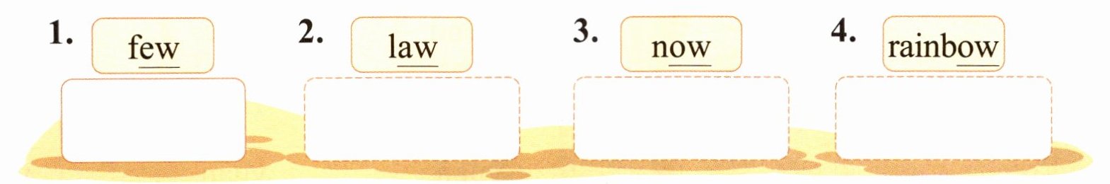 1.Dew,new 2.draw,strawberry 3.flower,brown 4.know,yellow
