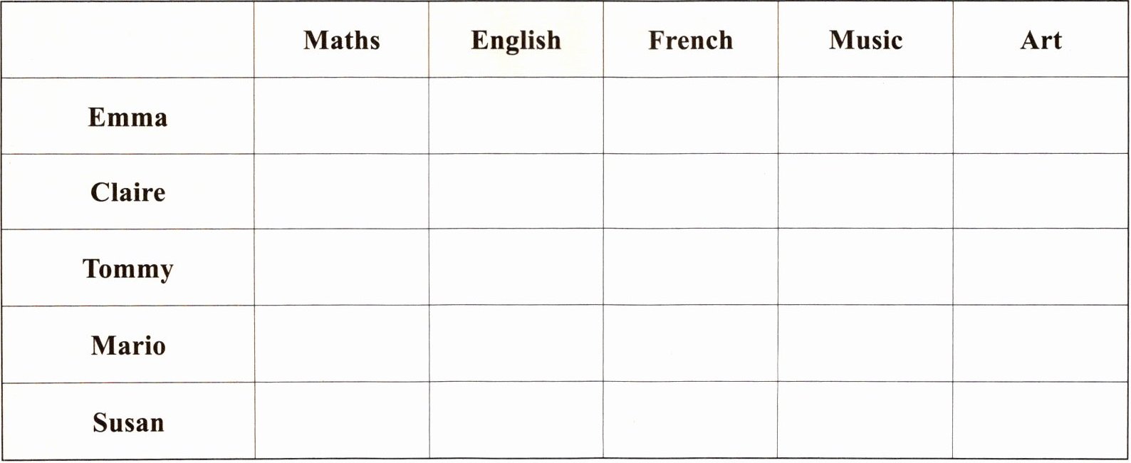 | | Maths | English | French | Music | Art |