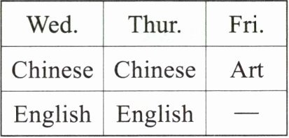 任务一:1. reading poems 2. Art 3. Australia 4. practising dialogues 任务二:B 任务三:【示例】My favourite teacher is Mr Wang. He teaches us Geography. He’s very nice. He often tells us many famous rivers, lakes and mountains. I like him very much.