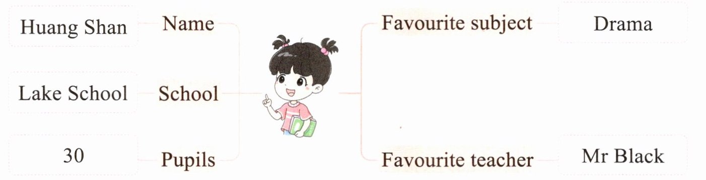 Hello, my name is Huang Shan. I study in Lake School. There are thirty pupils in my class. I have got many subjects. My favourite subject is Drama because I like acting in plays. My favourite teacher is Mr Black. He teaches us Maths. We all like him. I like my school. And I like my teachers and classmates.