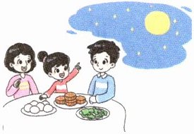 E. People eat moon cakes and enjoy the moon.